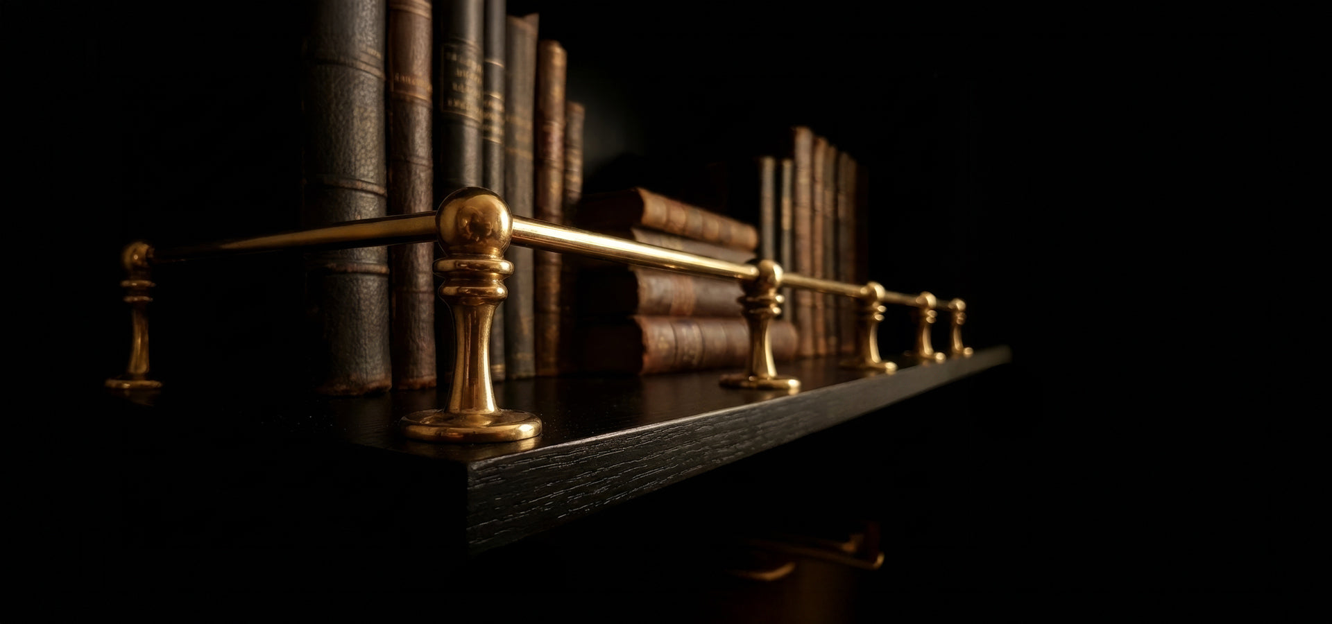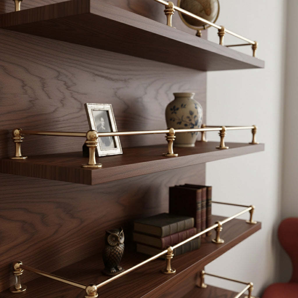 Elegant solid brass gallery rail for shelves: premium decorative railing for stylish, secure, luxury furniture.